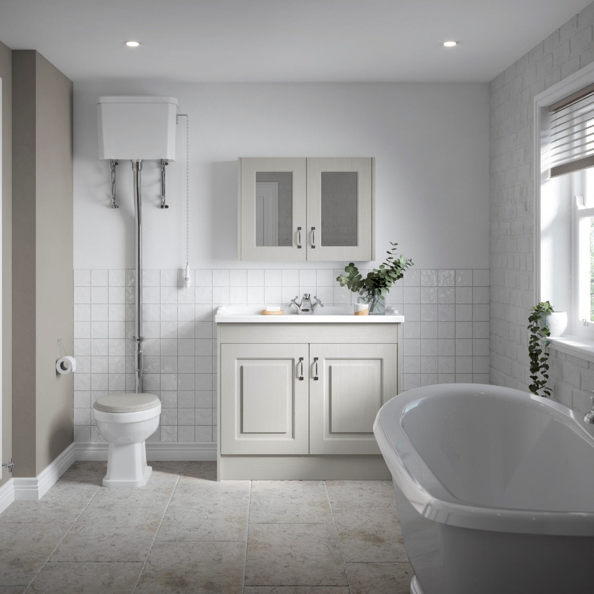 The Double Door Mirror Unit in Soft Grey by Stonewater combines style and functionality, making it a practical addition to any bathroom. Its design draws inspiration from traditional ceramics, seamlessly fitting into both modern and classic interiors. The soft grey color enhances various décor styles while serving as a subtle focal point.