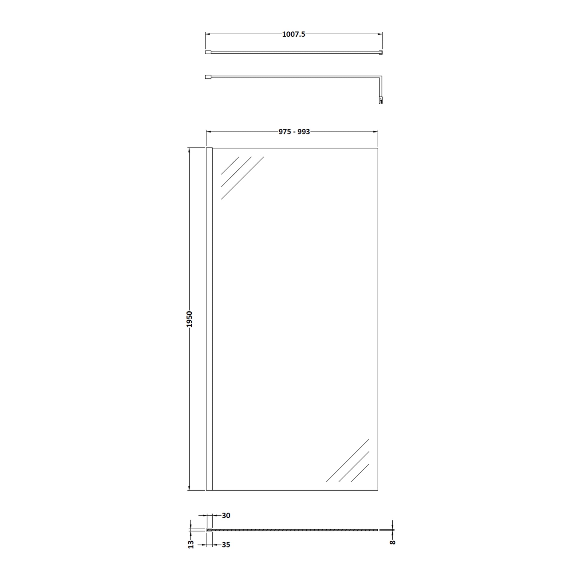 - Contains: Shower screen, wall profile for fixing the screen to the wall, horizontal support arm