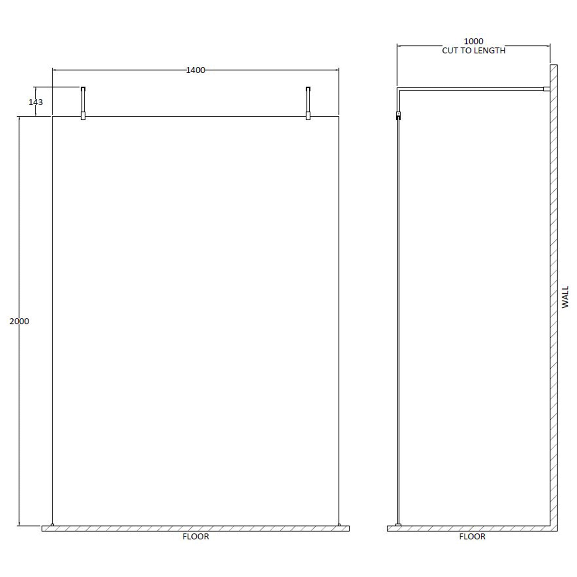 Fairford 1400mm 8mm Wetroom Screen, 2 Support Arms, 1950mm