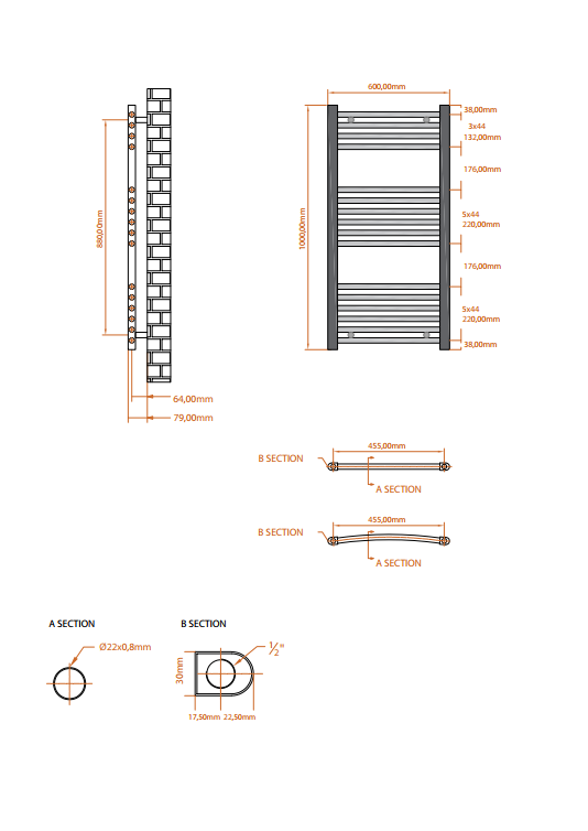 The Fairford 600 x 1600mm Straight Matt Black Towel Rail combines style and functionality, making it ideal for contemporary bathrooms. Its elegant matt black finish adds a sophisticated touch, while the arrangement of 26 evenly spaced bars ensures efficient heat distribution for maximum towel drying capability. With a slim profile featuring a radiator depth of 30 mm and a bar diameter of Ø22 mm, it is designed to perform without sacrificing aesthetic appeal.