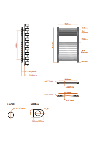 Designed to fit seamlessly into various layouts, it measures 600mm in width and 800mm in height, with adjustable projection for easy installation. This towel rail not only enhances the aesthetic of your bathroom but also ensures warm, ready-to-use towels.