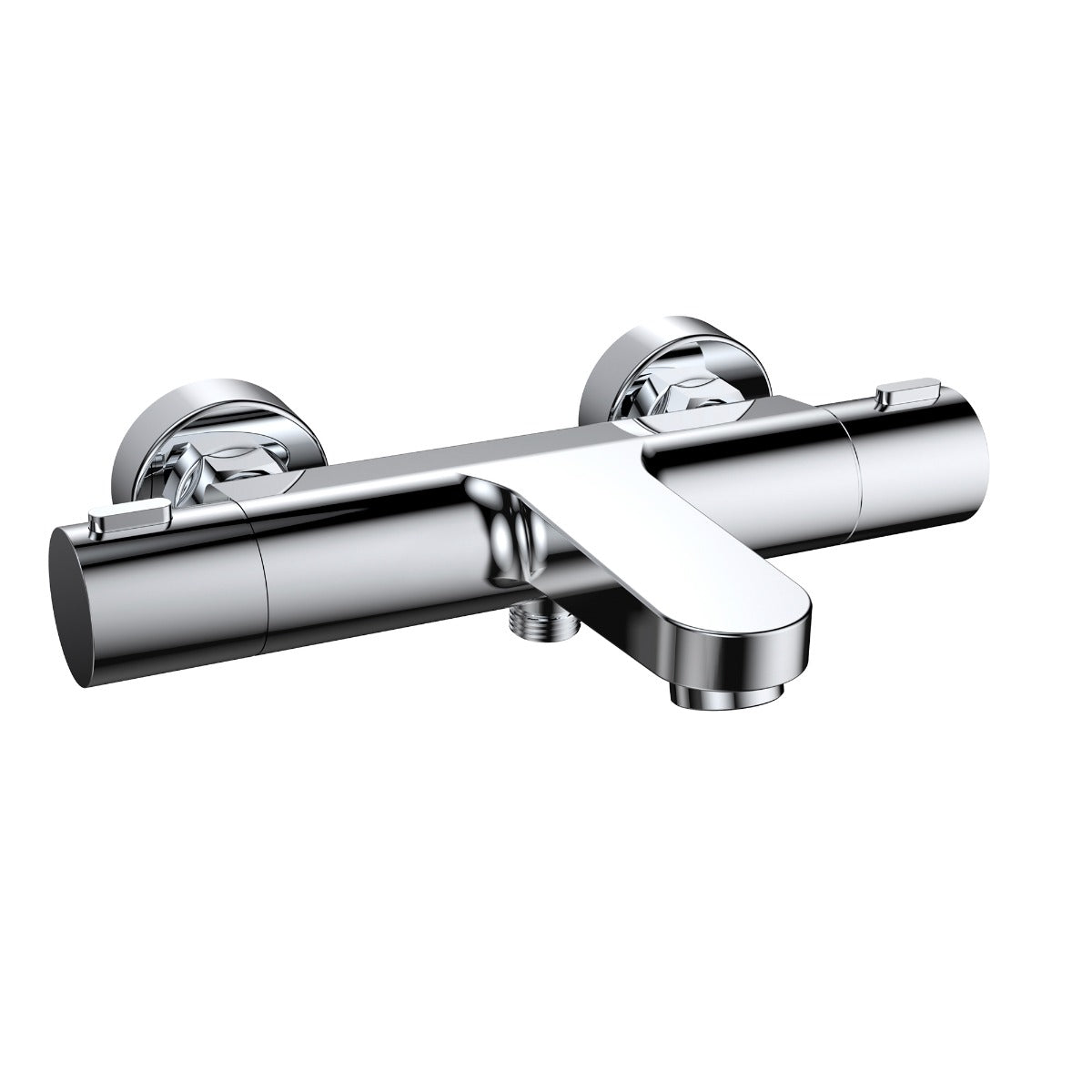 The Fairford Aarton Wall Mounted Thermostatic Bath Shower Mixer combines functionality and style, featuring a polished chrome finish that ensures durability and a lasting shine. Constructed from solid brass with an ABS handle, this mixer is designed for longevity and reliable performance. Its thermostatic control system provides precise temperature regulation, promoting a safe and comfortable bathing experience whether in the tub or shower.