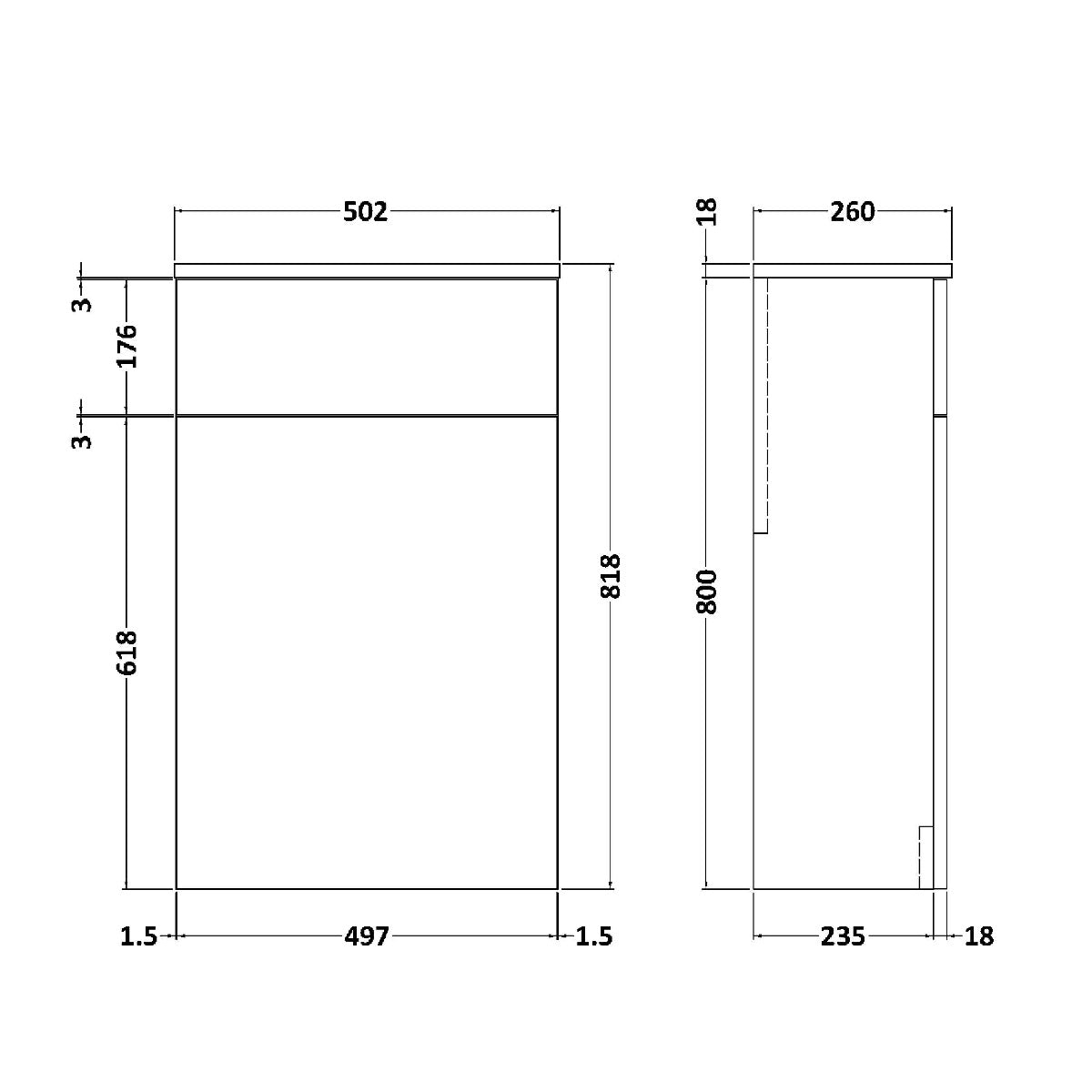 - Width: 502mm