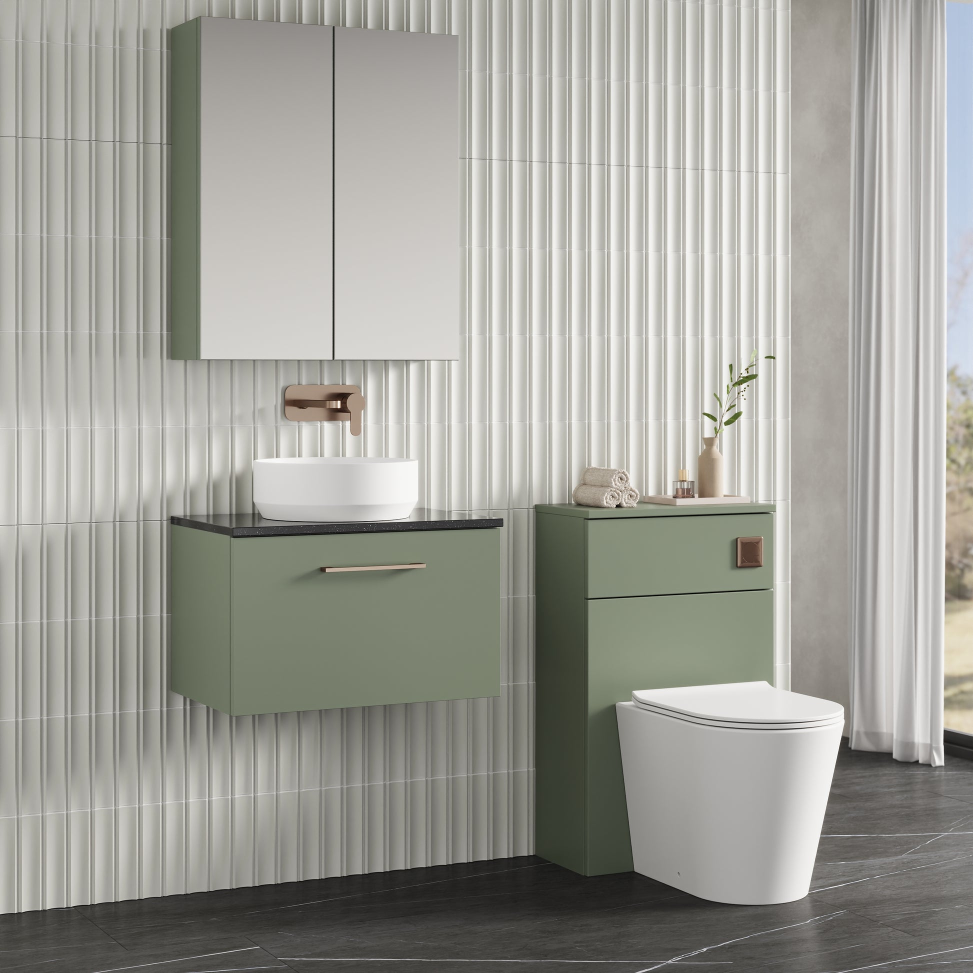 Fairford Aspri 2 600mm Satin Green Wall Hung Vanity Unit, Laminate Black Worktop