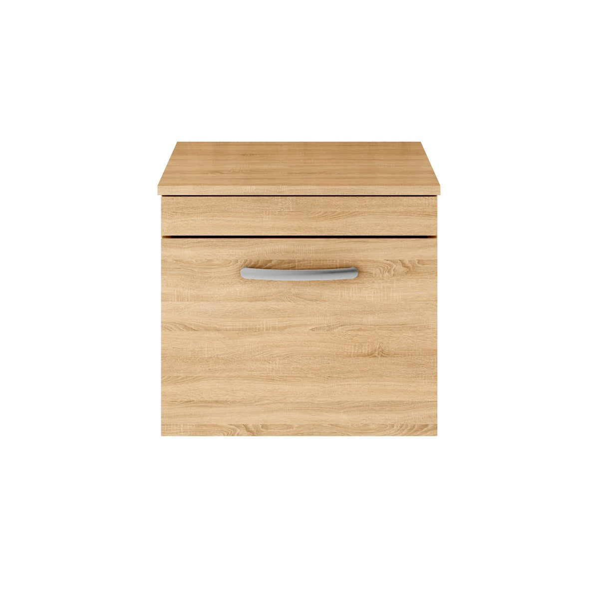 Fairford Carnation 500mm Natural Oak Wall Hung 1 Drawer Vanity Unit, with Worktop