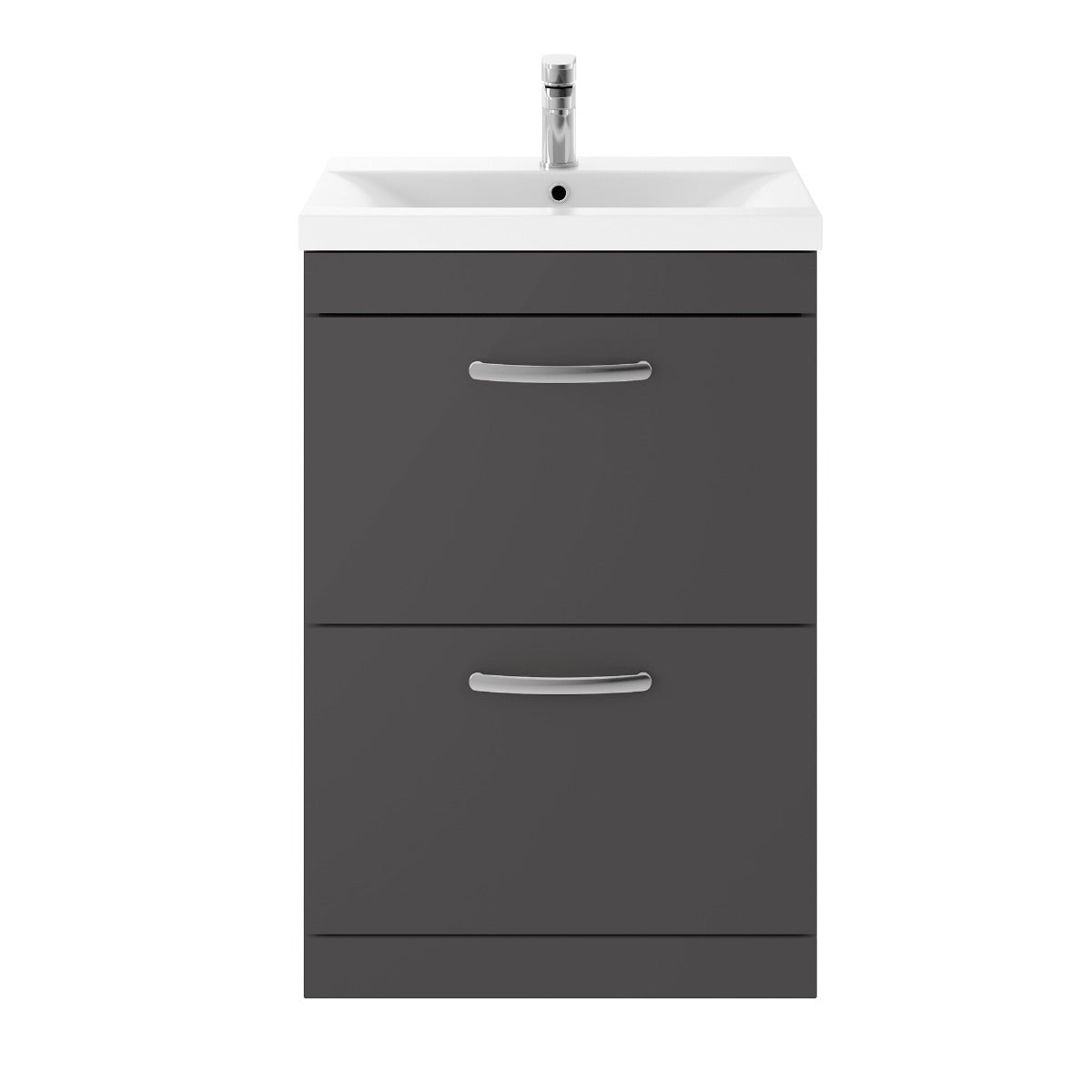 Fairford Carnation 600mm Gloss Grey Floor Standing 2 Drawer Vanity Unit, with Basin