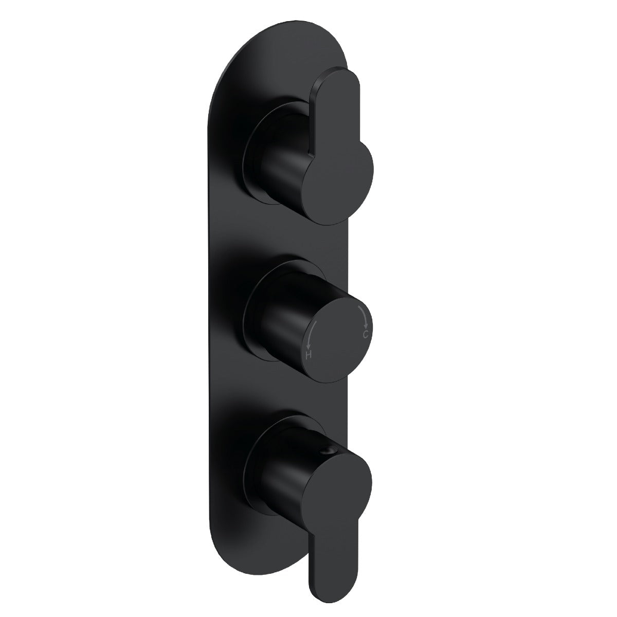 Fairford Element 10 Matt Black Round Concealed Triple Shower Valve with Diverter, 3 Outlet
