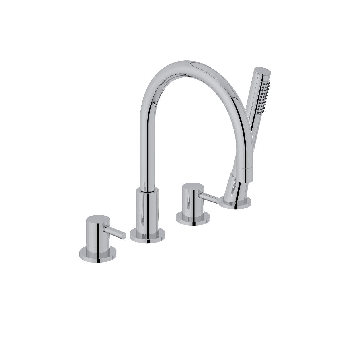 - Contains: Bath filler spout, 2 knob controls, handheld handset with hose