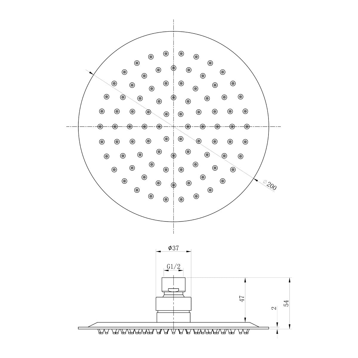 - Large 200mm ceiling-mounted rain shower head for an indulgent soak.
