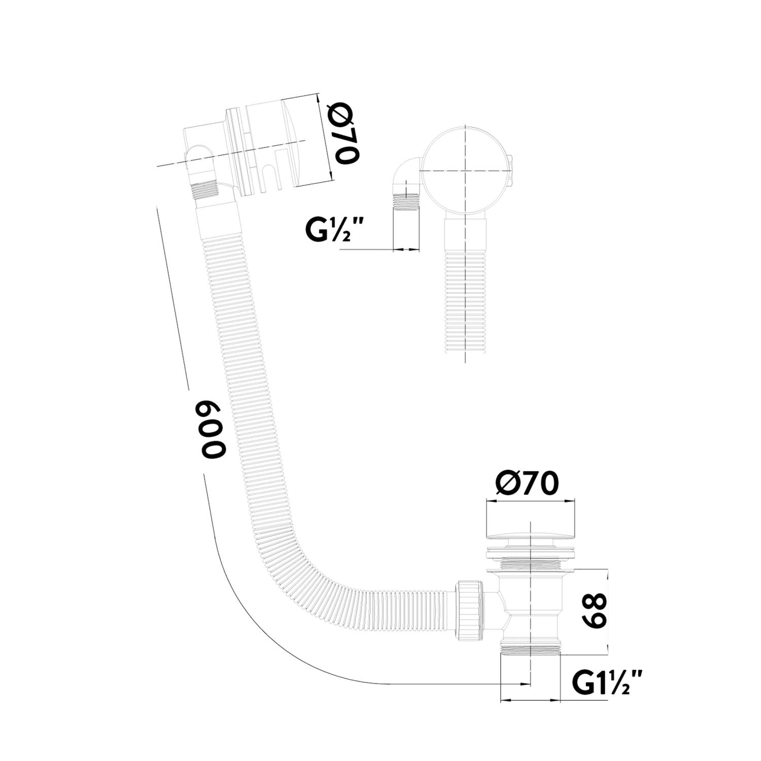 The included clicker function provides easy control over water flow, enhancing user convenience. Installation is straightforward due to the threaded nut connection, and the 600mm overflow hose adds versatility for different bath setups.