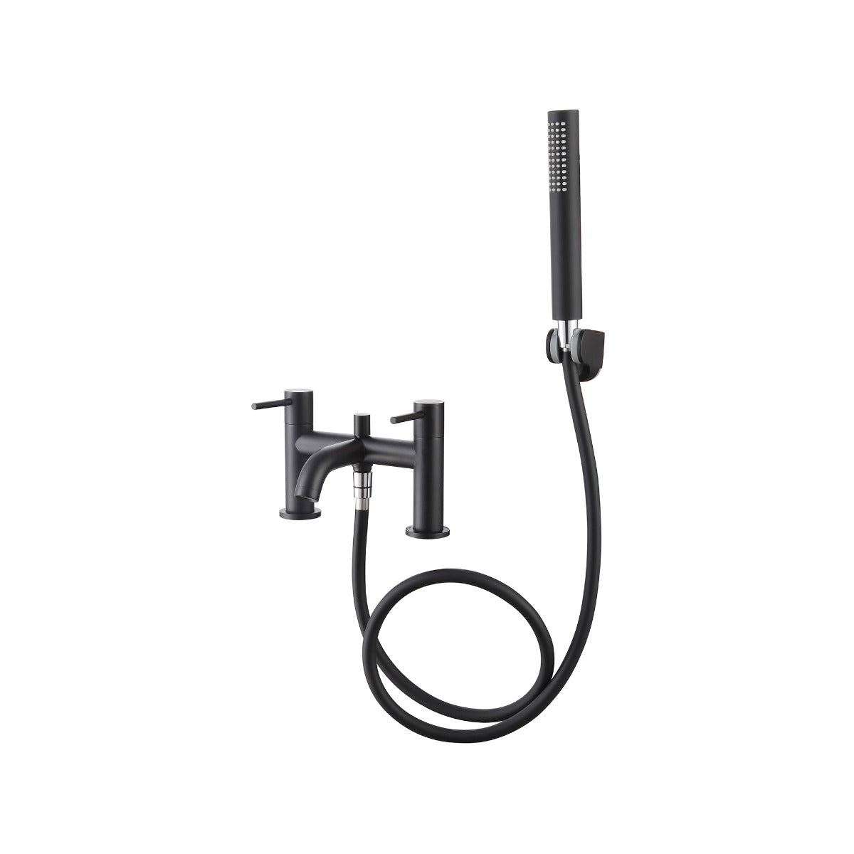 - Deck-mounted bath tap and wall-mounted shower handset included