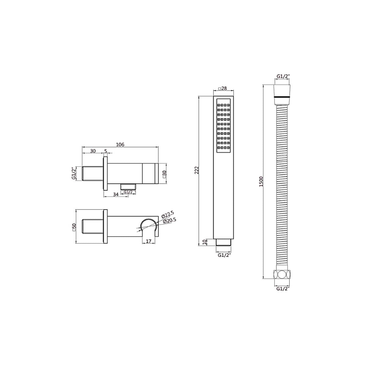 - All-in-one package including ABS handset, 1.5m PVC shower hose, and integrated wall elbow for easy installation.