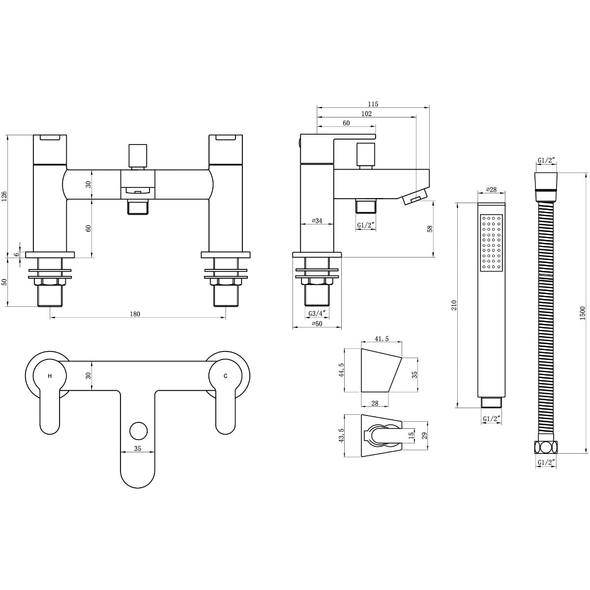 - Mounting Type: Tap is deck mounted, shower handset is wall mounted