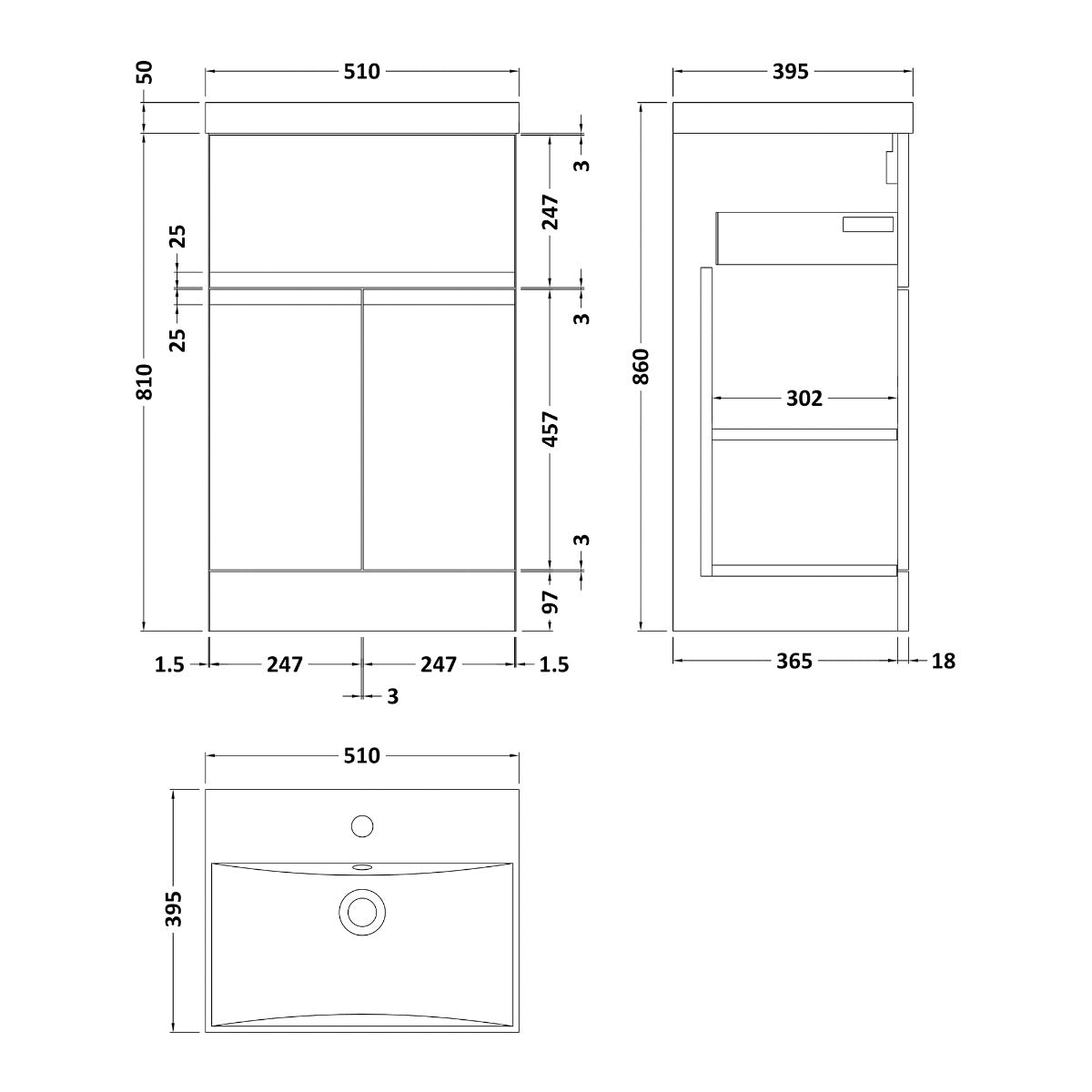 With a robust construction, the unit includes a 5-year guarantee against defects and a 1-year guarantee on serviceable parts. Measuring 395mm in depth, 510mm in width, and 810mm in height, it provides a compact yet spacious solution for your bathroom needs.