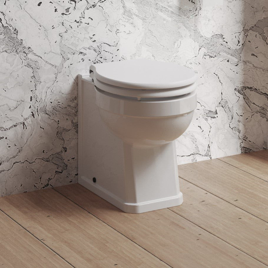 The Fairford Hexam Back To Wall Toilet combines traditional charm with modern efficiency, making it a great choice for compact bathrooms. Its concealed cistern integrates seamlessly into the wall, maintaining a minimalist look while optimizing space with a short projection of 520mm. Crafted from durable vitreous china, this toilet features a glossy, glazed surface that resists scratches and stains, ensuring easy maintenance and long-lasting appeal.