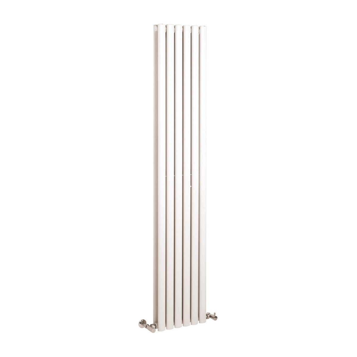 The Fairford Holus Double Panel Vertical Radiator measures 1800mm tall and 354mm wide, making it suitable for vertical spaces such as bathrooms and kitchens. Its gloss white finish and rounded edges provide a modern touch to any room. Designed for optimal performance, this radiator features 1/2" British Standard Pipe tappings and innovative ovular vertical tubes, achieving heat outputs between 1993 BTU at 30 °C and 4609 BTU at 60 °C, with thermal outputs ranging from 584W to 1321W. It is designed for wall-mounted installation, with a slim 110mm projection for space efficiency. The radiator includes fixing screws for easy setup, and while valves are sold separately, they allow for customization. Backed by a 20-year guarantee on materials, this unit promises longevity and reliable heating.