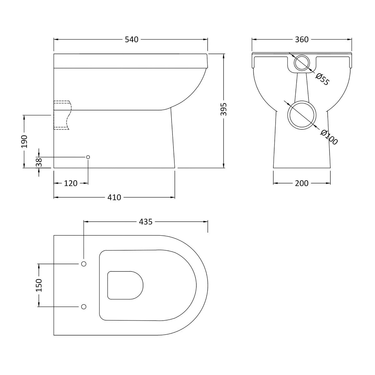 - Configuration: Back to wall Pan and Seat