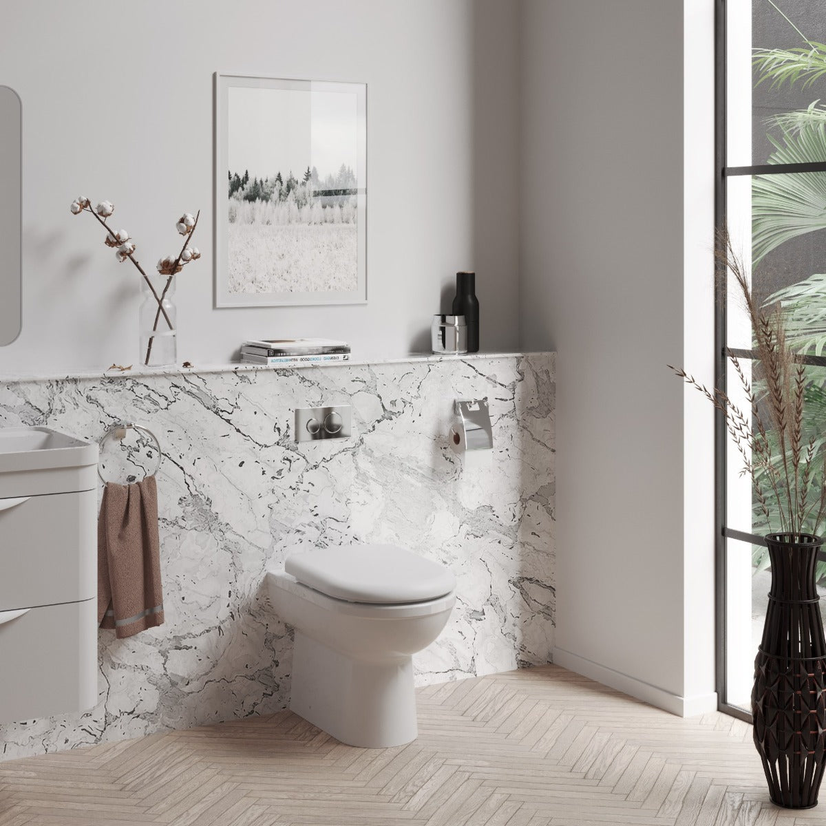 Included is a fixing kit, although a concealed cistern and other components may be necessary for setup. The toilet is backed by a 5-year guarantee, while the seat has a 1-year guarantee.