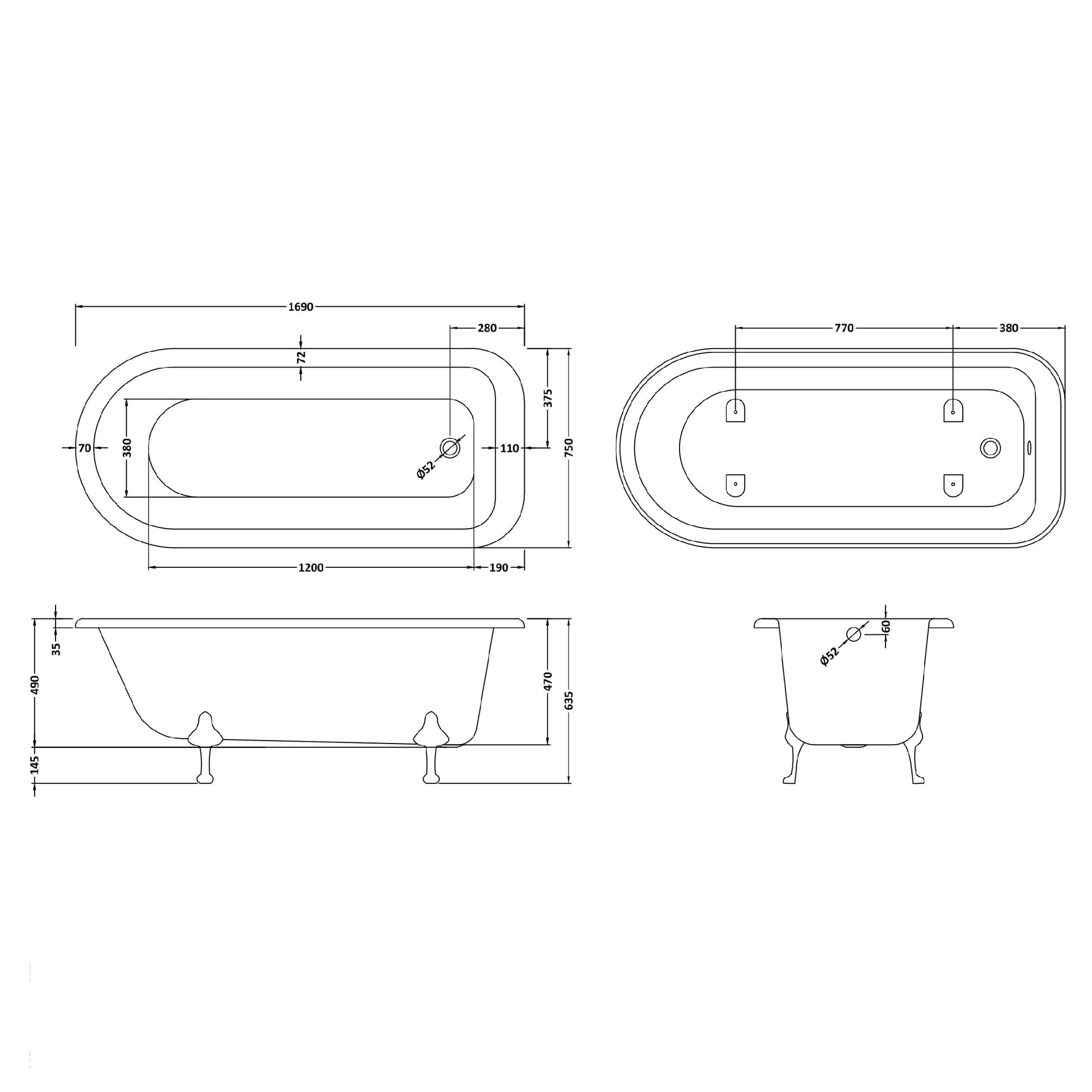 - Generous dimensions for ample soaking space (1700mm x 750mm)