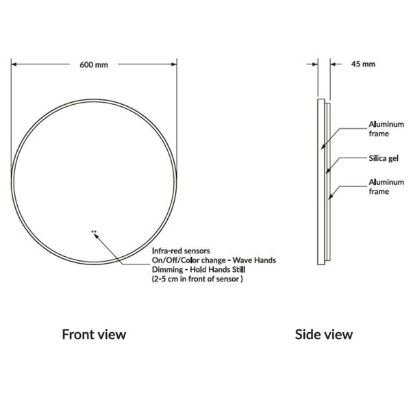 The Fairford Macie LED Mirror is a blend of style and functionality, crafted from steel and glass with a brushed brass finish. Its round design measures 600mm in width and height, with a 45mm depth, making it a compact choice for contemporary spaces. It features an integrated LED lighting system that offers adjustable color temperatures from 3000K to 6400K, controlled by a touch sensor for easy customization. The 26-watt LED technology is energy-efficient and rated at energy class F.