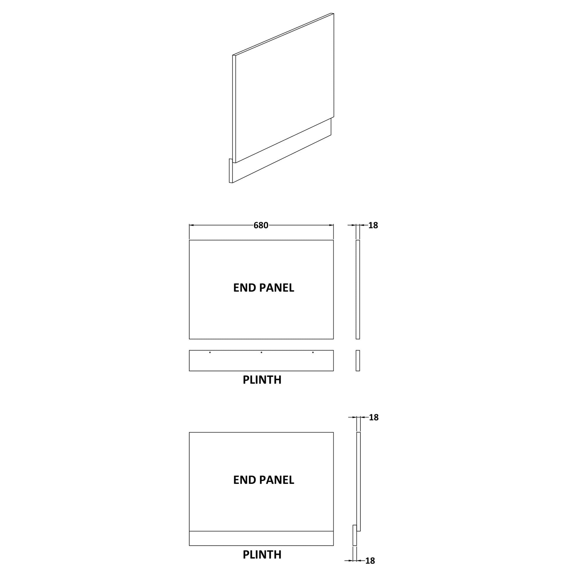 Fairford MDF White End Panel with Plinth, 700mm