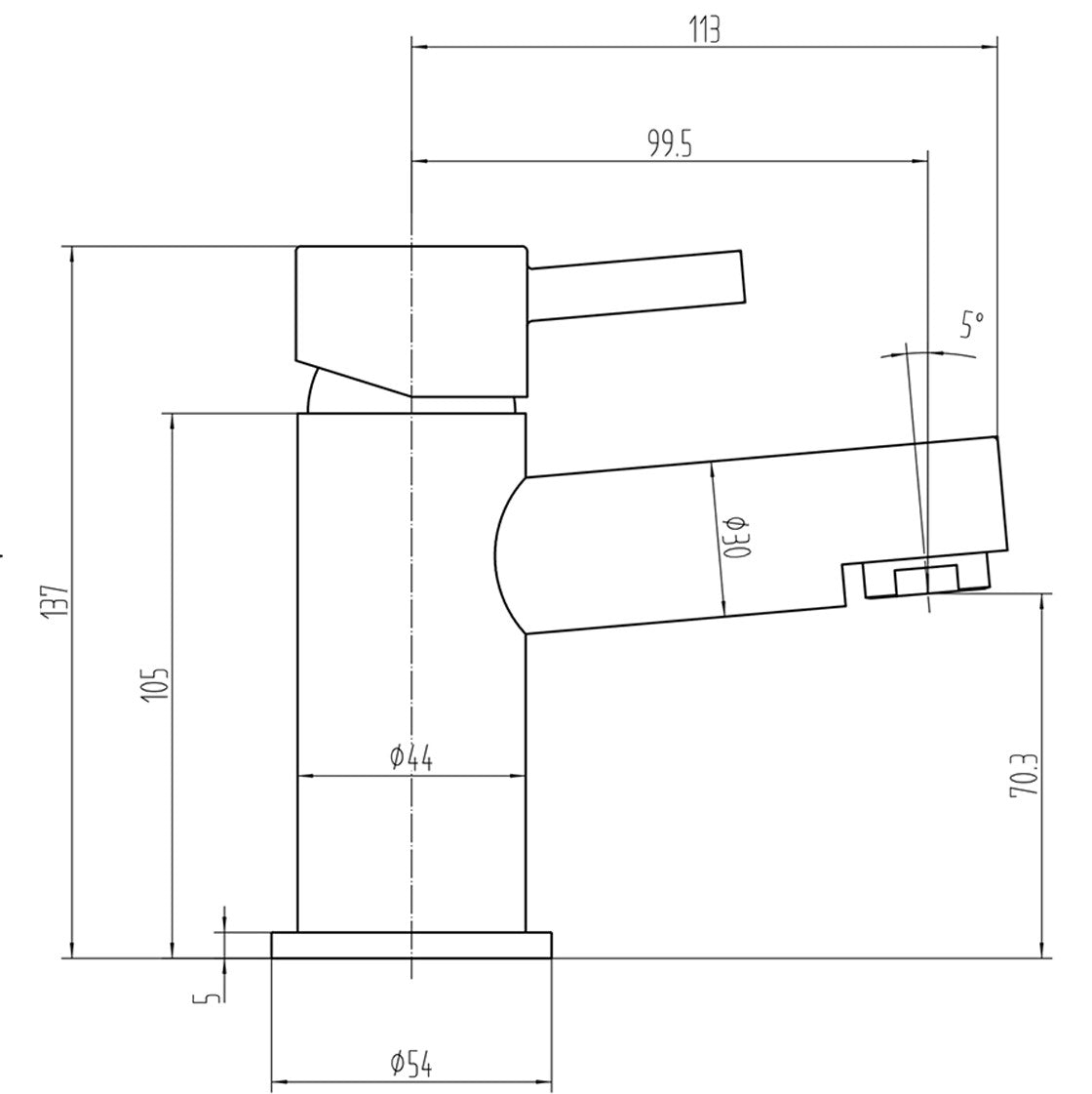 This mixer includes a push-button waste for easy water disposal, enhancing its usability. Its sleek, round design complements contemporary and minimalist styles, while the lever control allows for simple water flow and temperature adjustments.