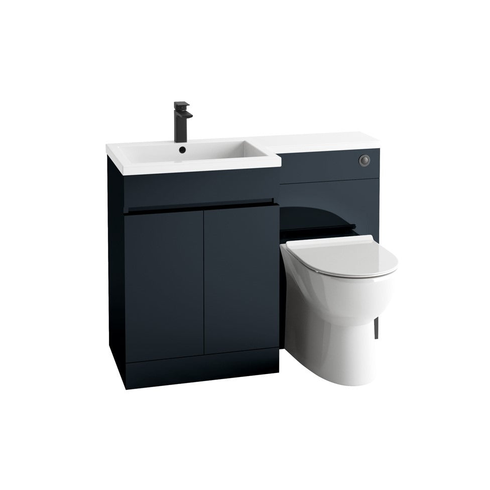 The Fairford Resonance 1100mm Anthracite Left Hand Combination Pack combines modern design with practical functionality, making it a suitable choice for various bathroom styles. Its sleek anthracite finish enhances the contemporary aesthetic of any space. Constructed from durable Vinyl Wrapped MDF, this unit promises longevity while offering a streamlined and space-saving solution with its rectangular shape and L-shaped basin bowl.