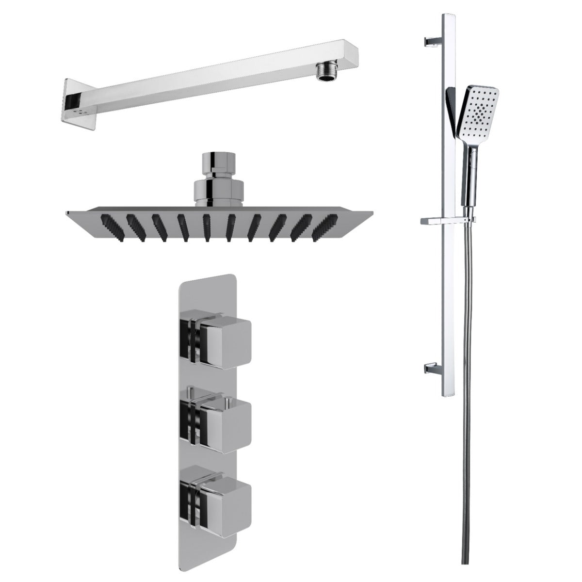 Fairford Una Concealed Shower Kit with Slide Rail Kit and Wall Mounted Rain Head, Chrome