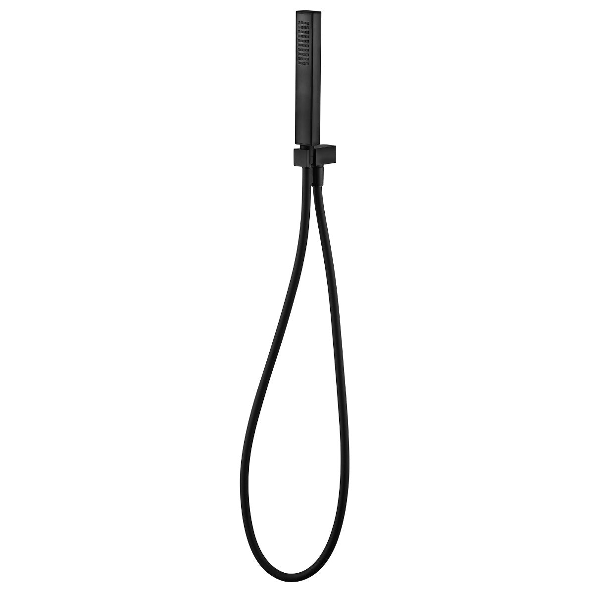 Fairford Una Square Matt Black Handset with Outlet Elbow, Bracket and Hose