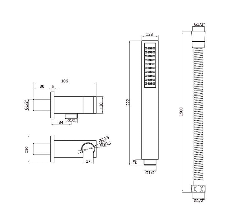 Constructed from durable high-quality ABS for the handset and robust brass for the outlet bracket, this set promises longevity and resilience. It includes a 1.5m shower hose and integrated wall elbow, designed for efficient performance across different water pressures.