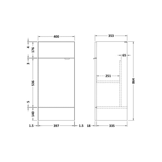 Designed for floor-standing installation, it includes one soft-close door with a modern wrapover handle, providing both style and practicality. Inside, a single shelf offers organized storage for essentials. The vanity unit is also eco-friendly, made from FSC-certified materials and supplied pre-assembled. With dimensions of 400mm width, 864mm