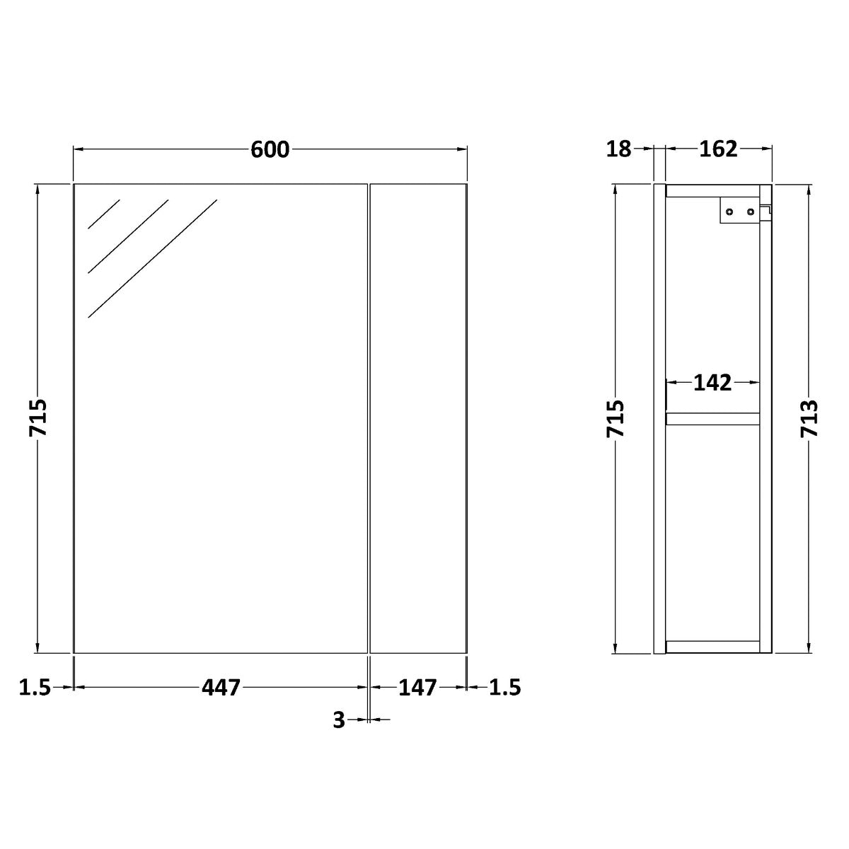 The Fairford Union 600mm Slimline Black Single Door Mirror Unit combines modern design with practical functionality, making it an ideal storage solution for family bathrooms. Finished in Hacienda Black, its textured woodgrain offers versatility while the handless design ensures a minimalist aesthetic. With dimensions of 600mm width, 715mm height, and a slimline depth of 182mm, it fits seamlessly into compact spaces without sacrificing storage capacity.