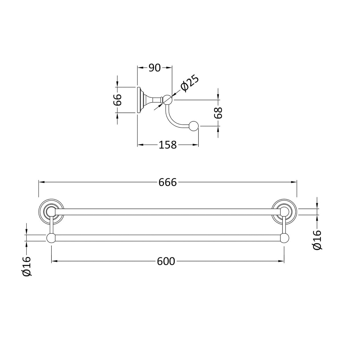 The Fairford Winchester Double Towel Bar combines elegance and practicality, enhancing any bathroom setting. Made from durable Brass and ABS, this towel bar promises longevity and reliability. Its Chrome finish not only adds a sophisticated touch but also resists corrosion, ensuring it looks great over time. With a double-bar design, it offers ample space for hanging multiple towels, helping to keep your bathroom organized. Installation is straightforward with the included fixing materials, and the product is backed by a 10-year guarantee, reflecting Stonewater's commitment to quality. This towel bar is an excellent addition for anyone looking to blend functionality with refined style in their home.