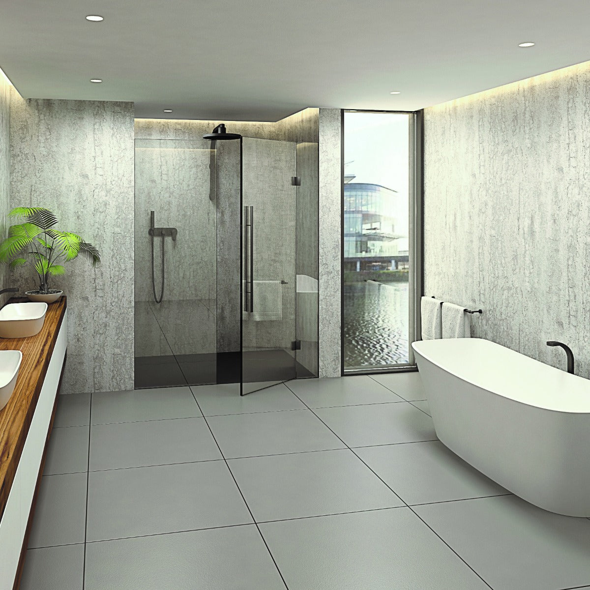 The Hydraset Lima Setlock 2400 x 1200 is a wall panel from Stonewater's NATURAL collection, designed to bring elegance and versatility to interior spaces. Featuring a blend of grey and beige hues, it captures the tranquil essence of coastal aesthetics, making it suitable for bathrooms, showers, and wet rooms.