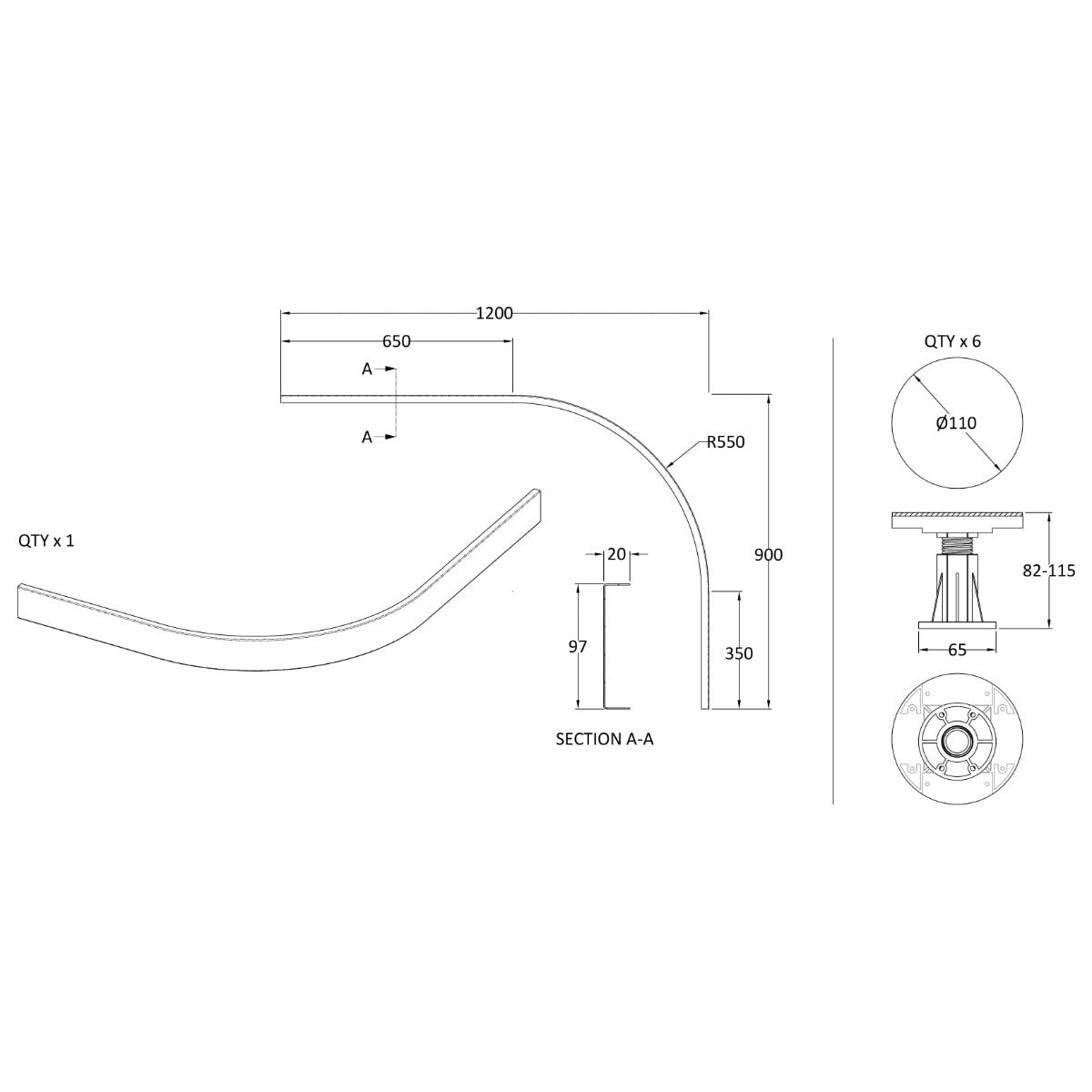 - Specially designed for 1000-1200mm Quadrant Rivato trays