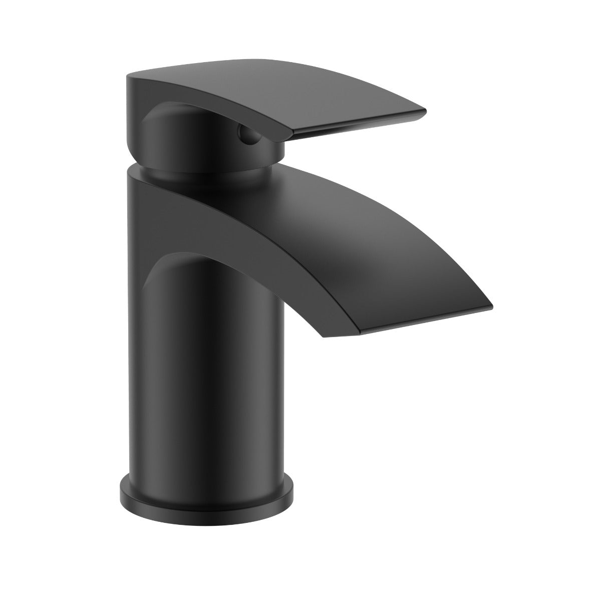 Rivato Reno Black Mini Basin Mixer with Push Button Waste