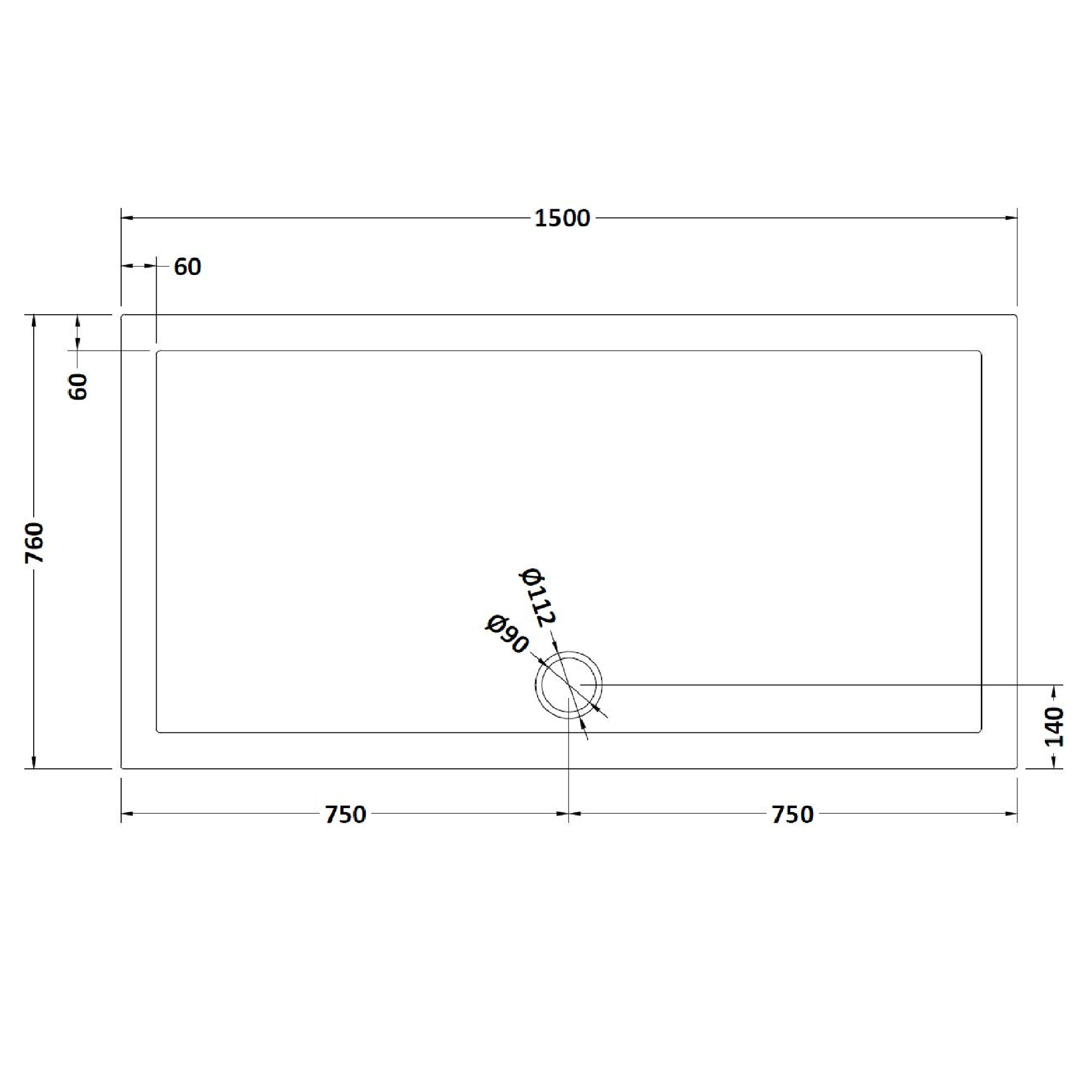 - Shower tray size: 1500mm x 760mm