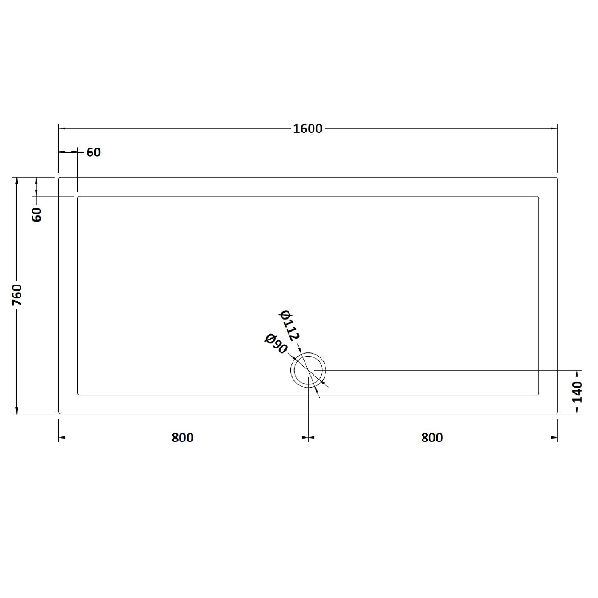Rivato Slate Grey Rectangular Shower Tray, Side Waste-1600mm x 760mm