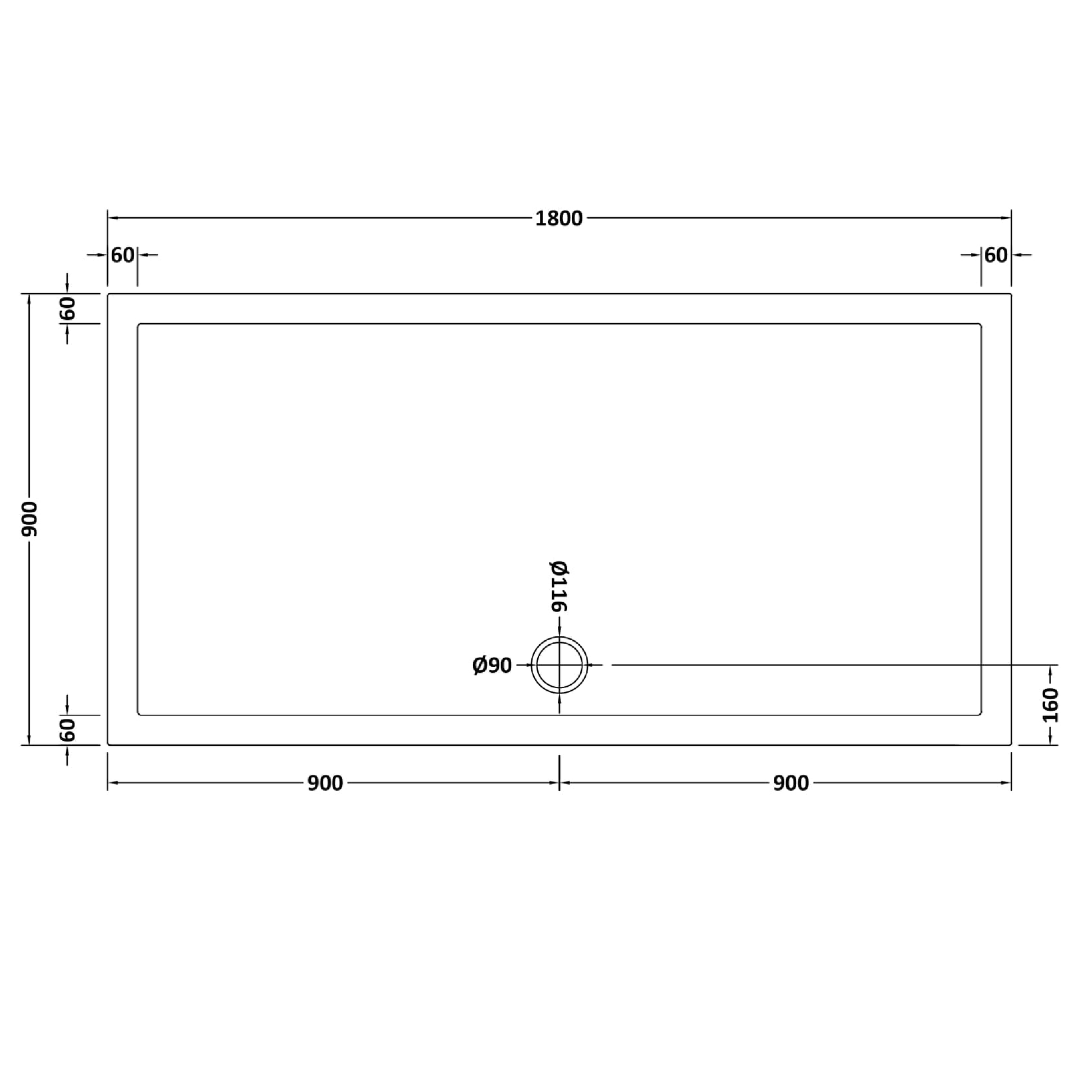 Rivato Slate Grey Rectangular Shower Tray, Side Waste-1800mm x 900mm