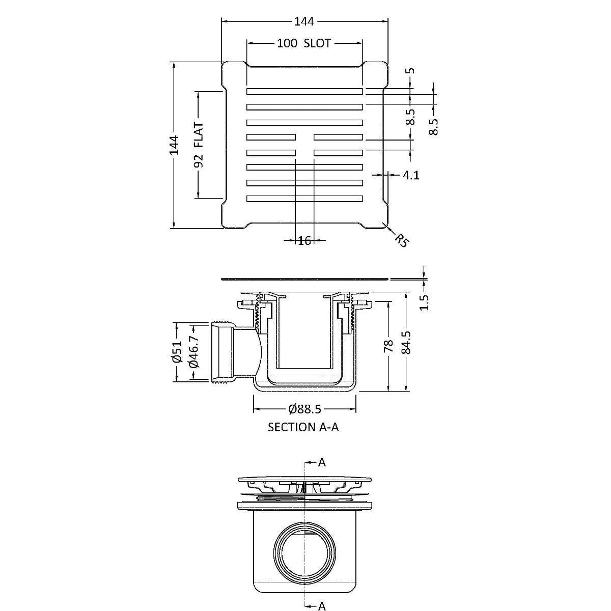 Square Shower Waste with Chrome Top for Slate Trays